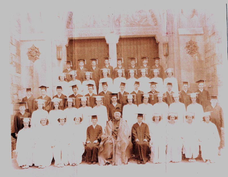 4th Row: Letitia M O'Loughlin, Marcella G Doyle, Ellen M Igoe, Beatrice A McCarthy, Hannah Marie McElligott, Marie Y Pepin, Margaret Patricia Kelly, Kathleen M Malloy, Barbara P Gatto, 3rd Row; Robert J Hughes, Robert W.Brester, William T "Red" Archer, Joseph B Archer, Jerome P Holland, James J Blake, Thomas J O'Reilly, James H Reutzel, Richard D Henn, John M Franklin, James P Ivers, James A Woods 2nd Row: Joseph M Carney, Eileen M Rogan, Ellen P Brown, Catherine E Lorigan, Elsie V Detko, Catherine F Gallagher, John F McCarney, Julia A O'Leary, ?, Edith T Rubyor, Mary B Nieto, Irene E Cook, Thomas L Trier 1st Row: Mary Jane Hartnett, Carolyn C Szafran, Gerarda A Murphy,