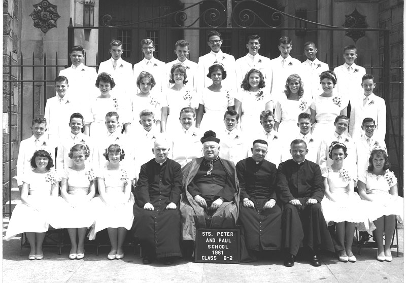 Top Row Left Louis Forenza, William Hannigan, Tom Szachmary, Jimmy Klatt, James Walther, Dennis Smith, Sammy Gallucci, Harold Tobin, Kenny Lingren Next Row Down 3rd Row Down Eddie Coyle, Donald McCrossen, Eugene Hayes, John Flugel, Daniel Henn, Paul Brogan, George Christ, Wigberto Rivera, Jeffrey Fagan, Angelo Catalano . Bottom Row Eileen Kennedy, Dorothy Thurlow, Rita McConnon, Father O’Neil, Monsignor Dolan, Father Fowler, Father McManus, Suzie Randall, Maureen Readding