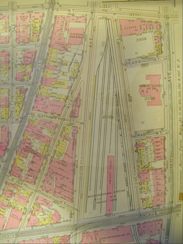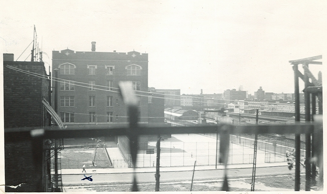A view of P.S. 38’s school yard and the rail yard extending to Westchester Avenue (Photo taken in the late 50’s) |